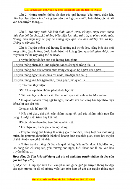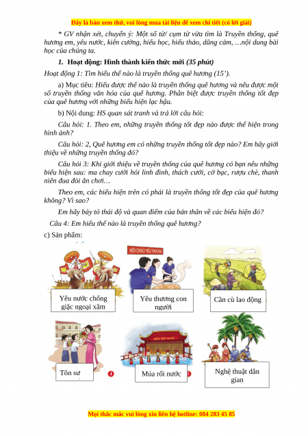 Câu 4: Truyền thống quê hương là những giá trị tốt đẹp, riêng biệt của môi