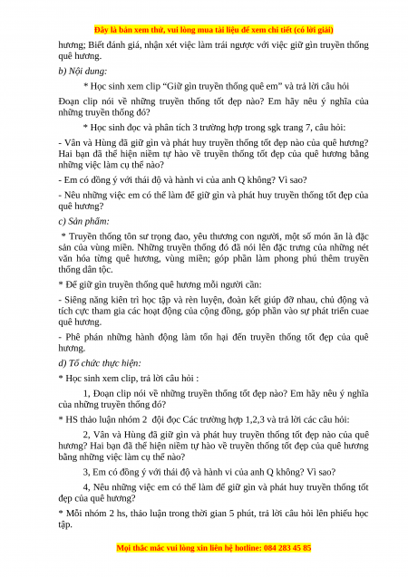hương; Biết đánh giá, nhận xét việc làm trái ngược với việc giữ gìn truyền thống