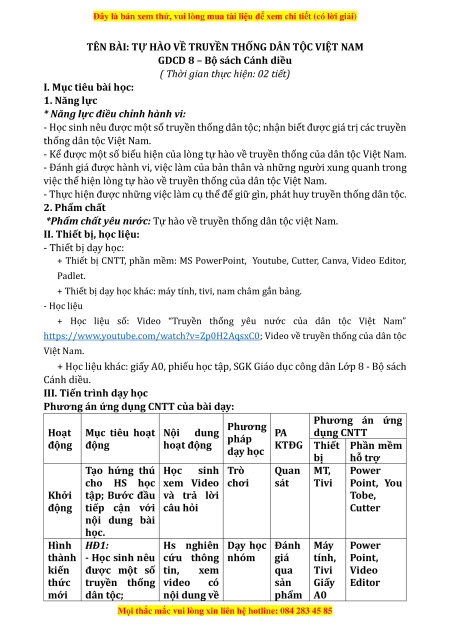 Giáo án GDCD 8 Cánh diều | Giáo án GDCD 8 mới, chuẩn nhất