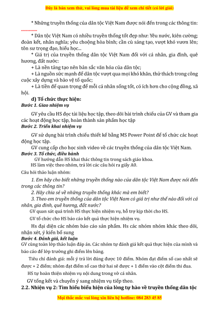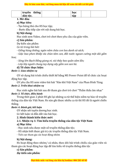 2.1. Nhiện vụ 1: Tìm hiểu truyền thống của dân tộc Việt Nam a) Mục tiêu: