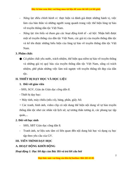 - Thực hiện được những làm cụ thể để giữ gìn, phát huy truyền thống dân tộc. 2. Năng lực