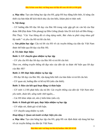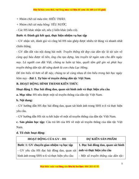và kể tên được những biểu hiện của lòng tự hào về truyền thống dân tộc Việt Nam. 3. Phẩm chất: