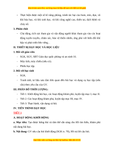 - Tiết 1: Khởi động bài học, các hoạt động khám phá, luyện tập mục I, mục II.
