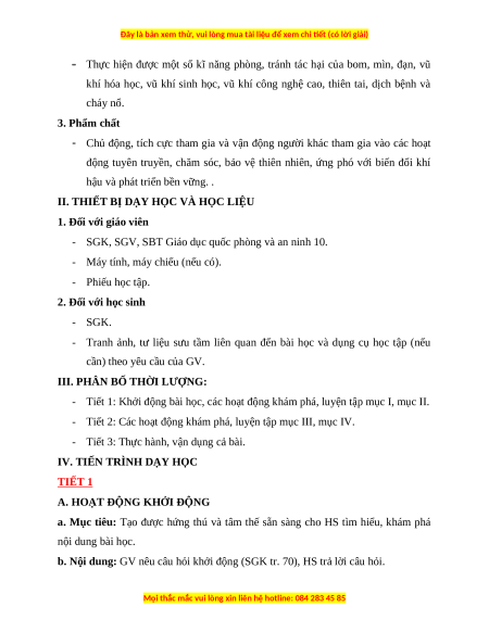 Bộ giáo án Giáo dục quốc phòng 10 Cánh diều đã cập nhật đủ Cả năm.