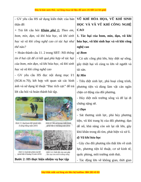 Hoạt động 1: Tìm hiểu tác hại của bom, mìn, đạn, vũ khí hóa học, vũ khí sinh
