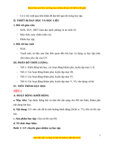 - Tiết 1: Khởi động bài học, các hoạt động khám phá, luyện tập mục I, II.
