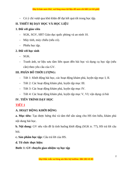 Bộ giáo án Giáo dục quốc phòng 10 Cánh diều đã cập nhật đủ Cả năm.