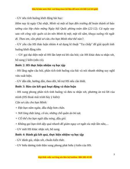 đi. Theo em, cần phải sơ cứu cho bạn Minh như thế nào?.