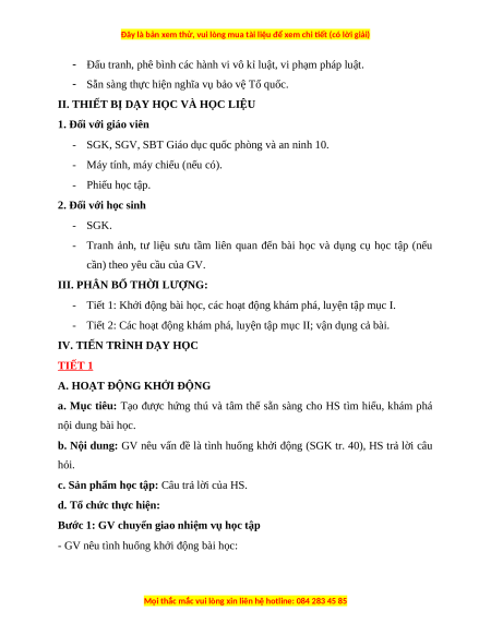 Bộ giáo án Giáo dục quốc phòng 10 Cánh diều đã cập nhật đủ Cả năm.
