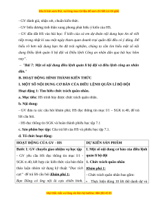 - Tiết 1: Khởi động bài học, các hoạt động khám phá, luyện tập mục I.