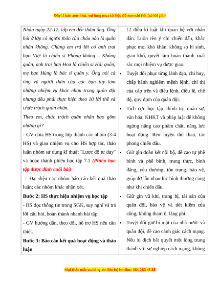SGK tr.40, kết hợp các kiến thức của bản thân 1. Chức trách quân nhân