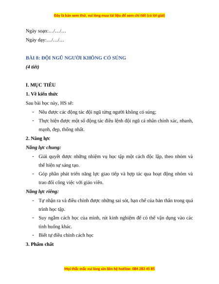 Giáo án GDQP 10 Bài 8 (Cánh diều): Đội ngũ từng người không có súng