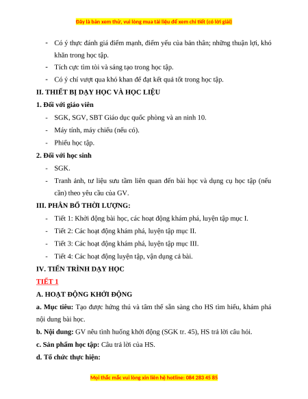 Bộ giáo án Giáo dục quốc phòng 10 Cánh diều đã cập nhật đủ Cả năm.