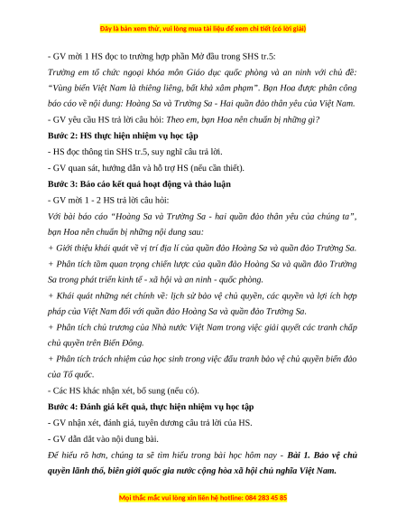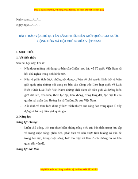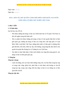 Giáo án GDQP 11 Bài 1 (Cánh diều): Bảo vệ chủ quyền lãnh thổ, biên giới quốc gia nước Cộng hòa xã hội chủ nghĩa Việt Nam