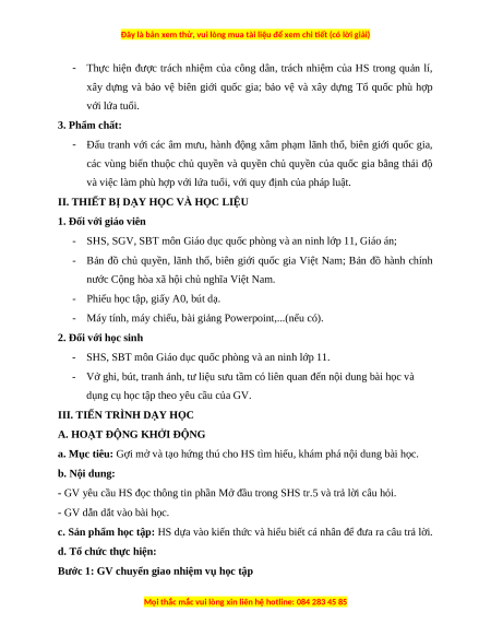 - SHS, SGV, SBT môn Giáo dục quốc phòng và an ninh lớp 11, Giáo án;