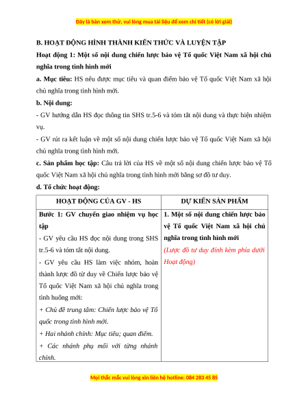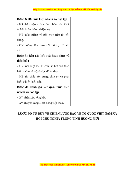 Hoạt động 1: Một số nội dung chiến lược bảo vệ Tổ quốc Việt Nam xã hội chủ
