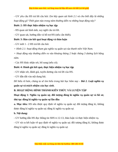 Giáo án GDQP 11 Bài 2 (Cánh diều): Luật nghĩa vụ quân sự và trách nhiệm của học sinh