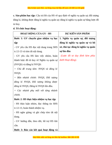 - GV yêu cầu HS đọc nội dung trong SHS sơ, thủ tục đăng kí nghĩa vụ quân