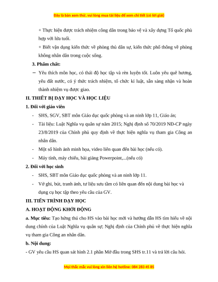- SHS, SGV, SBT môn Giáo dục quốc phòng và an ninh lớp 11, Giáo án;