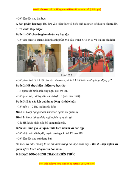 Giáo án GDQP 11 Bài 2 (Kết nối tri thức): Luật nghĩa vụ quân sự và trách nhiệm của học sinh