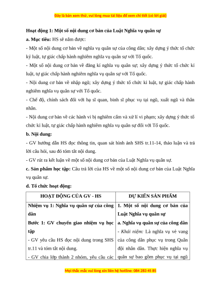 Nhiệm vụ 1: Nghĩa vụ quân sự của công 1. Một số nội dung cơ bản của dân