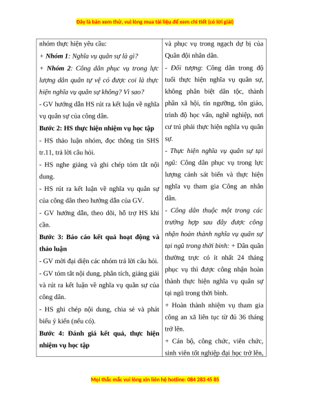 - GV yêu cầu HS đọc nội dung trong SHS của công dân phục vụ trong Quân