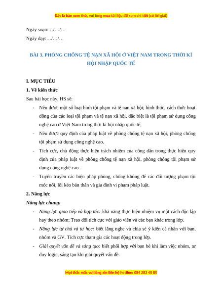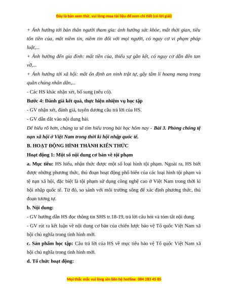 - Nêu được một số loại hình tội phạm và tệ nạn xã hội; hình thức, cách thức hoạt