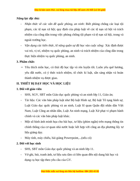 - SHS, SGV, SBT môn Giáo dục quốc phòng và an ninh lớp 11, Giáo án;
