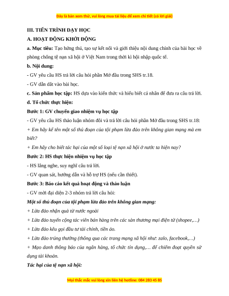 III. TIẾN TRÌNH DẠY HỌC