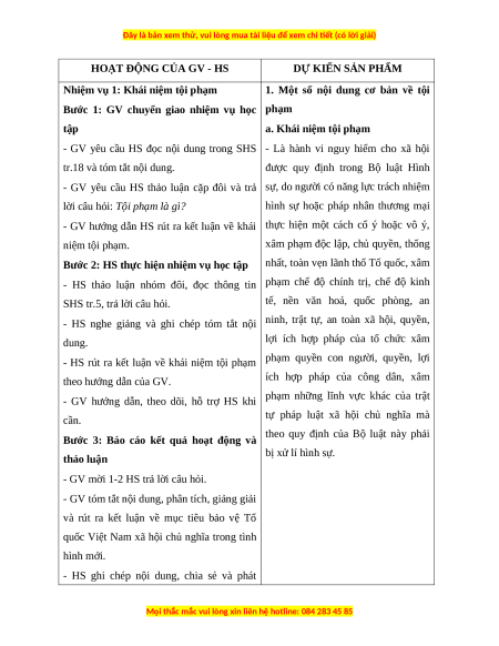 Hoạt động 1: Một số nội dung cơ bản về tội phạm