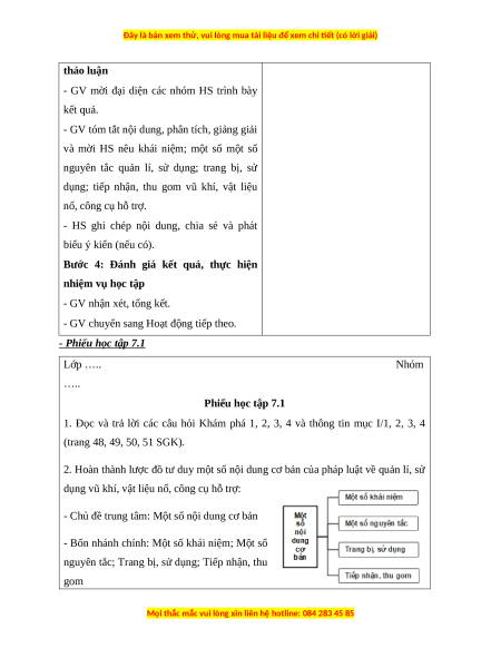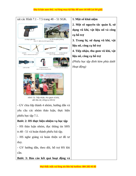 trang bị, sử dụng; tiếp nhận, thu gom vũ khí, vật liệu nổ, công cụ hỗ trợ bằng cách sử dụng lược đồ tư duy. b. Nội dung: