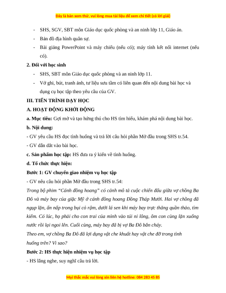 - SHS, SGV, SBT môn Giáo dục quốc phòng và an ninh lớp 11, Giáo án.