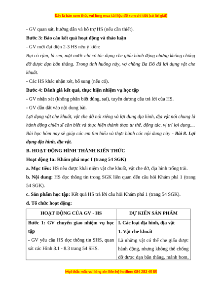 BÀI 8. LỢI DỤNG ĐỊA HÌNH, ĐỊA VẬT I. MỤC TIÊU 1. Về kiến thức Sau bài học này, HS sẽ:
