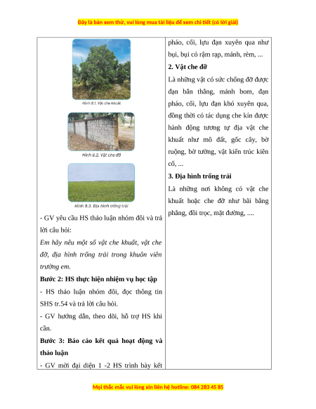 a. Mục tiêu: HS nêu được khái niệm vật che khuất, vật che đỡ, địa hình trống trải.