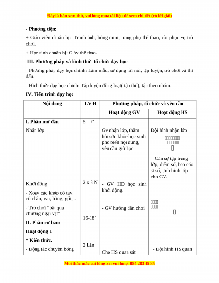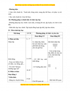 - Phương pháp dạy học chính: Làm mẫu, sử dụng lời nói, tập luyện, trò chơi và thi đấu.