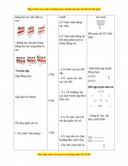 tập luyện. Thực hiện được chuyền bóng bằng hai tay trên đầu, sang phải, sang trái, qua hai chân ra sau.