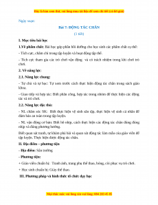 Bài 7: ĐỘNG TÁC CHÂN (1 tiết)