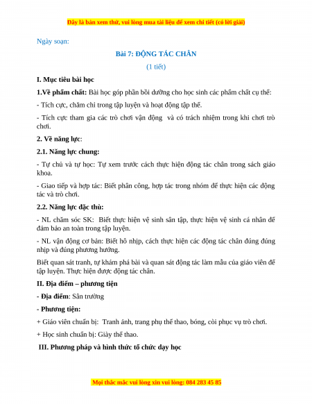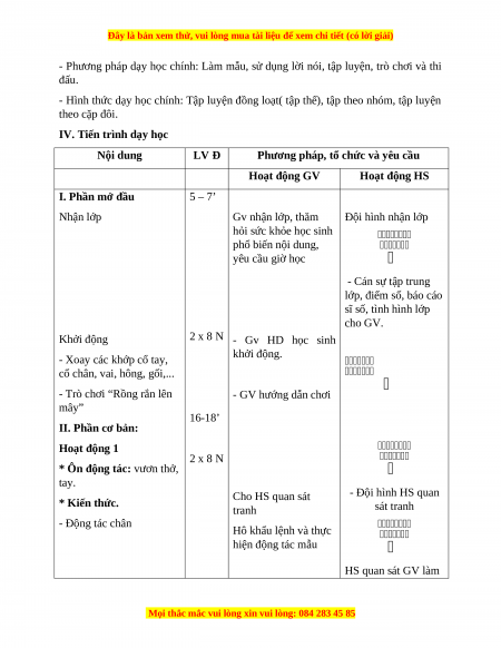 - Phương pháp dạy học chính: Làm mẫu, sử dụng lời nói, tập luyện, trò chơi và thi đấu.