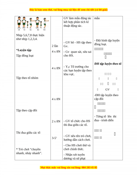 - Phương pháp dạy học chính: Làm mẫu, sử dụng lời nói, tập luyện, trò chơi và thi