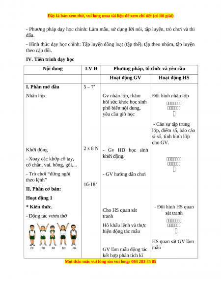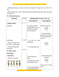 - Phương pháp dạy học chính: Làm mẫu, sử dụng lời nói, tập luyện, trò chơi và thi đấu.