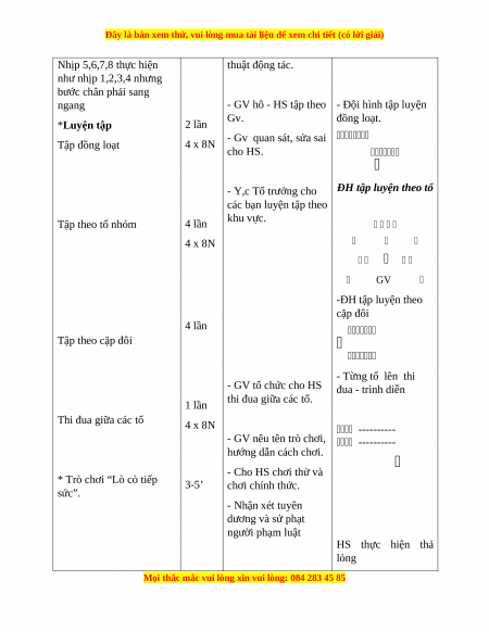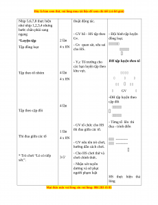 - Phương pháp dạy học chính: Làm mẫu, sử dụng lời nói, tập luyện, trò chơi và thi
