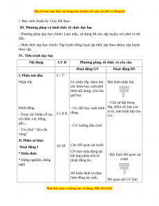 - Phương pháp dạy học chính: Làm mẫu, sử dụng lời nói, tập luyện, trò chơi và thi