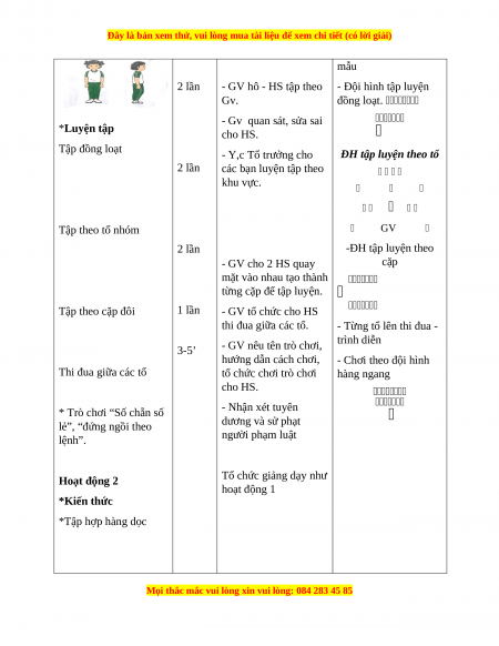 - Hình thức dạy học chính: Tập luyện đồng loạt( tập thể), tập theo nhóm, tập luyện theo cặp.