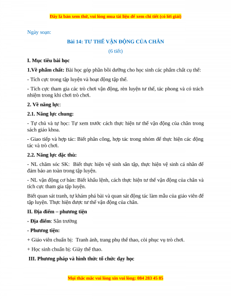 Bài 14: TƯ THẾ VẬN ĐỘNG CỦA CHÂN (6 tiết)