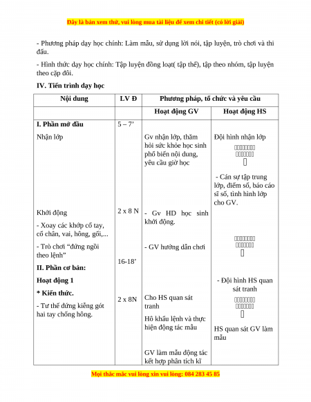 - Phương pháp dạy học chính: Làm mẫu, sử dụng lời nói, tập luyện, trò chơi và thi đấu.