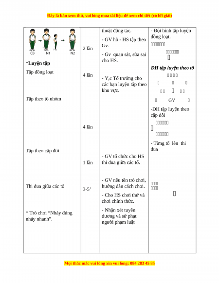 - Hình thức dạy học chính: Tập luyện đồng loạt( tập thể), tập theo nhóm, tập luyện theo cặp đôi.