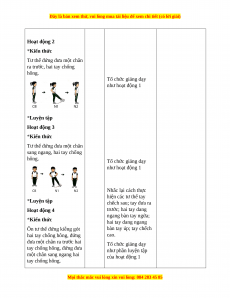- NL vận động cơ bản: Biết khẩu lệnh, cách thực hiện tư thế vận động của chân và