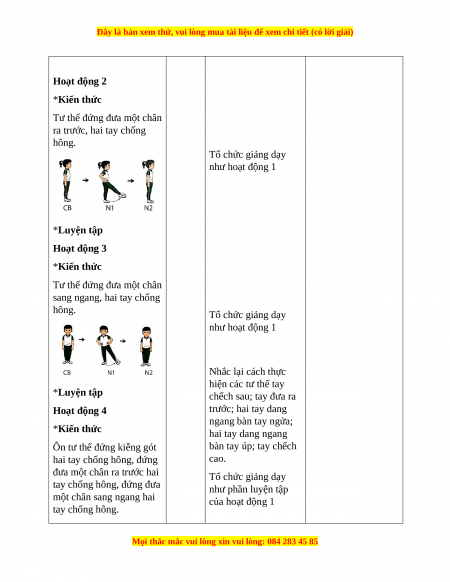Tư thế đứng đưa một chân ra trước, hai tay chống hông. Tổ chức giảng dạy như hoạt động 1 *Luyện tập Hoạt động 3 *Kiến thức