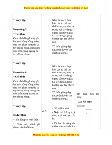 Tư thế đứng đưa một chân sang ngang, hai tay chống hông. Tổ chức giảng dạy như hoạt động 1 Nhắc lại cách thực hiện các tư thế tay *Luyện tập chếch sau; tay đưa ra Hoạt động 4 trước; hai tay dang ngang bàn tay ngửa; *Kiến thức hai tay dang ngang