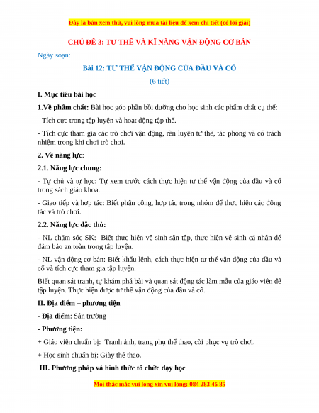 Bài 12: TƯ THẾ VẬN ĐỘNG CỦA ĐẦU VÀ CỔ (6 tiết)